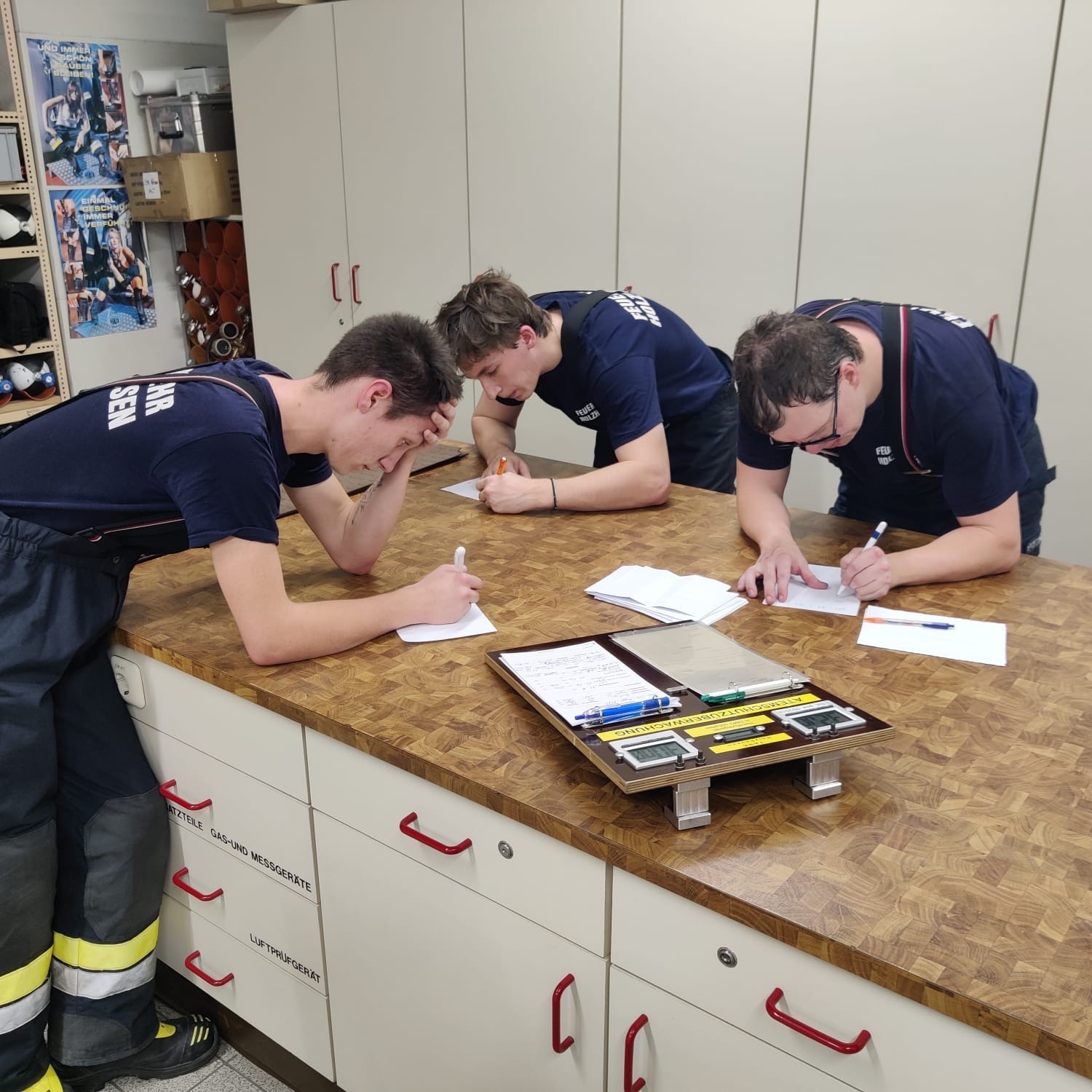 Angefangen bei den theoretischen Grundlagen und der Geräteaufnahme bis hin zu einer praktischen Einsatzübung und der anschließenden Pflege und Wartung der Atemschutzgeräte, mussten die Atemschutzträger ihr Wissen unter Beweis stellen.