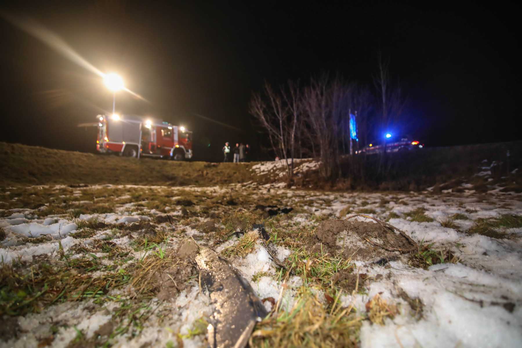 Gemeinsam mit den Einsatzkräften der Feuerwehr Marchtrenk wurde der beschädigte PKW auf einem Feldweg abgestellt und auf austretende Flüssigkeiten kontrolliert.