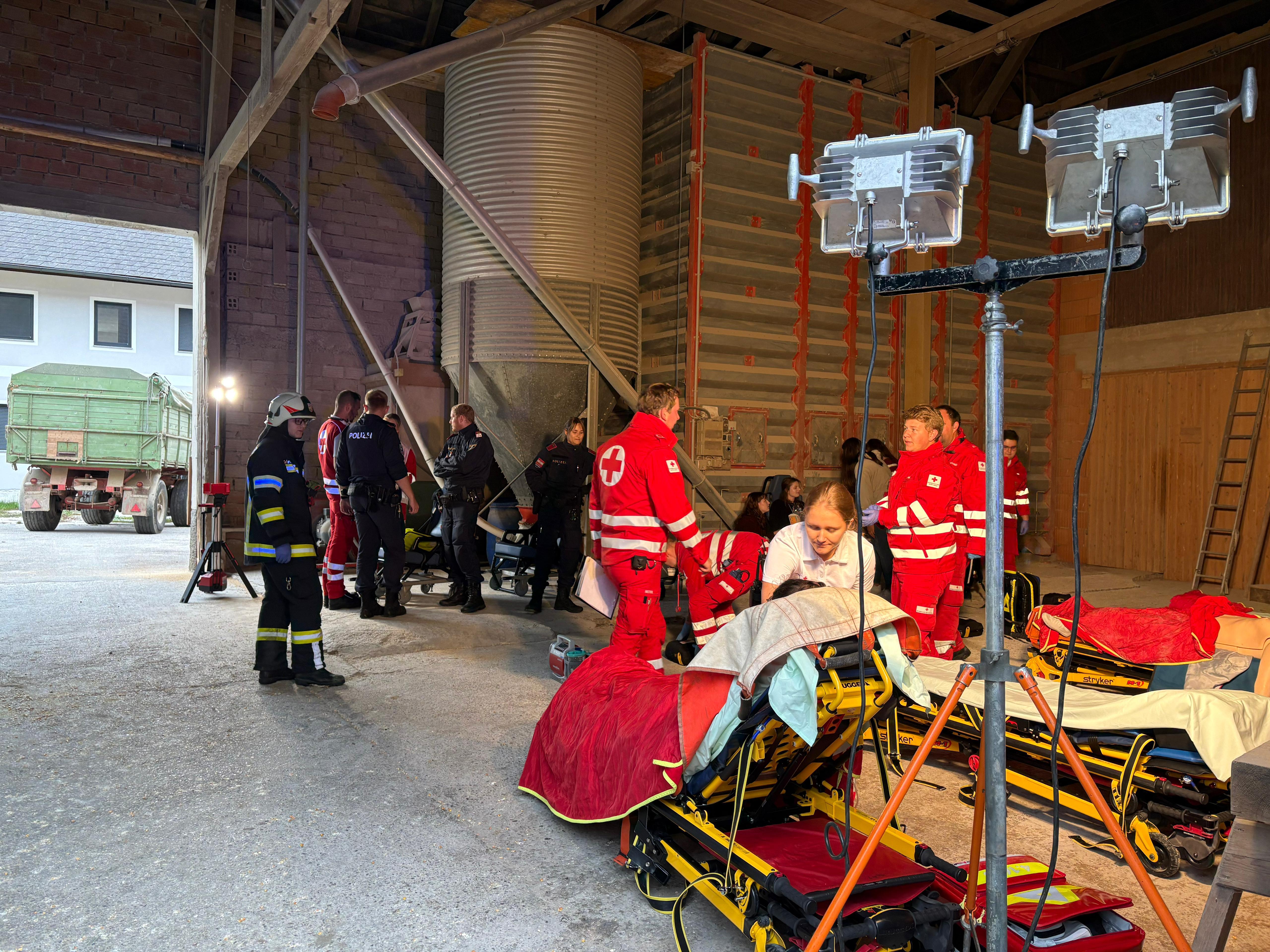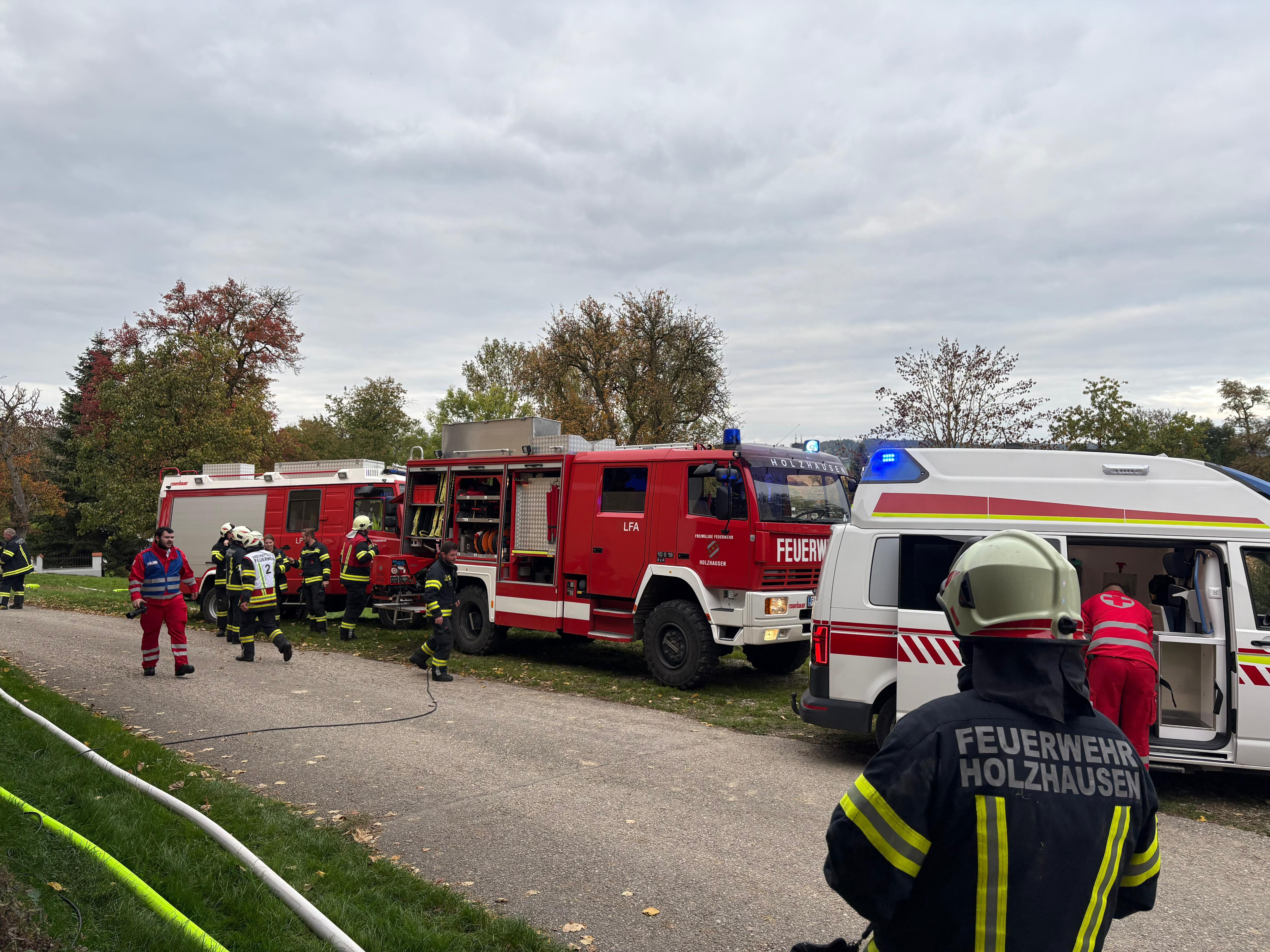 Angenommen wurde ein Brand in einer Maschinenhalle eines Landw. Objekts. Die Feuerwehr Holzhausen stellte einen Atemschutztrupp und sicherte nach dem Ausfall einer Tragkraftspritze die Wasserversorgung durch das einrichten einer weiteren Saugstelle an einem anderen Teich. Die Schlauchleitung konnte dabei von der Feuerwehr Finklham übernommen werden. In weiterer Folge wurde für den Verletztensammelplatz des Roten Kreuz eine Beleuchtung aufgebaut.